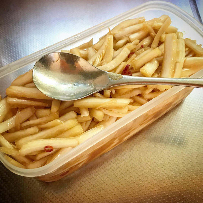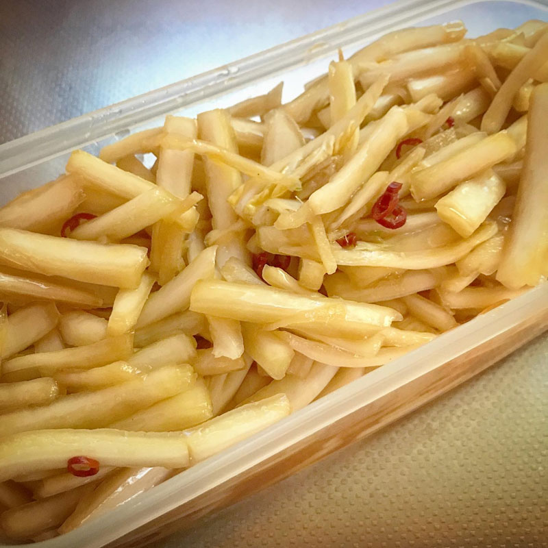 昨日仕込んだ白菜の芯の甘酢漬け、