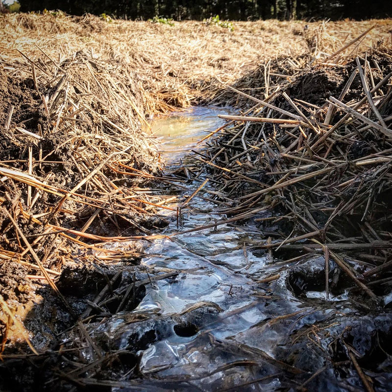 日陰は毎日水が凍ってる。