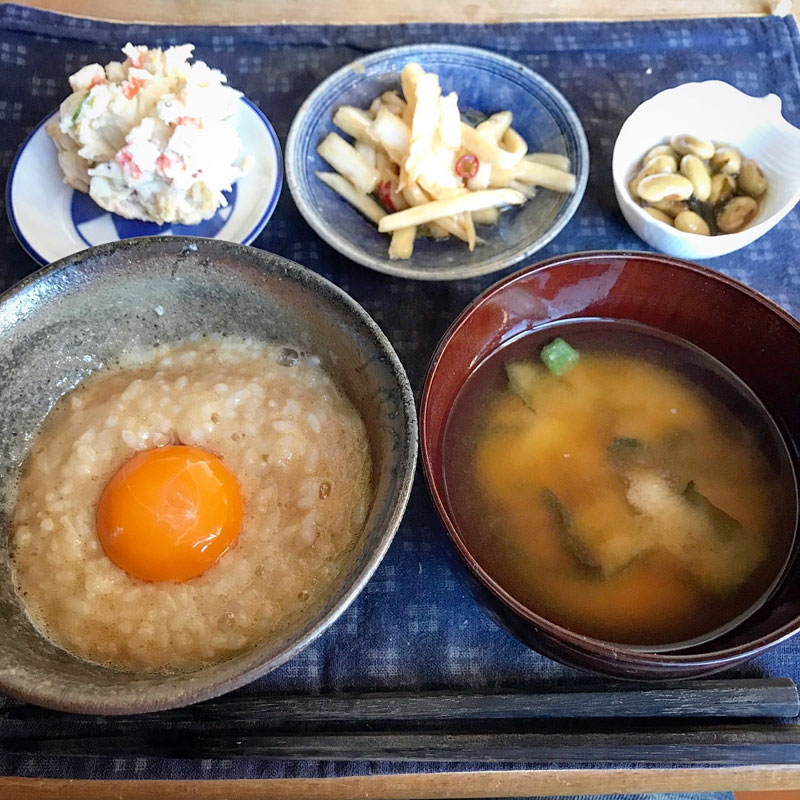 ご飯に卵の白身だけ入れて醤油と共に泡立つほどかき混ぜて黄身を落とす。最後の方で黄身を破ると濃厚な卵かけ御飯に。