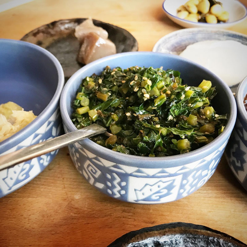 畑の大根を抜いてきてカミさんが作ってくれた大根葉の炒めを