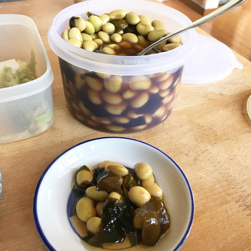 煮豆。自家製の白菜漬け。