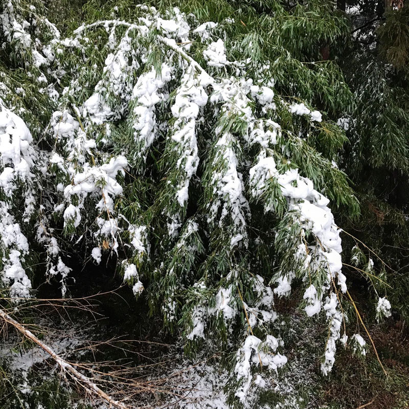 雪の乗った竹がしなる、しなる。せめて冷えて氷の塊になりませんように。