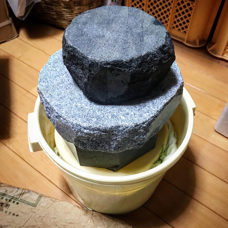 昨日の夕方仕込んだ白菜漬け。