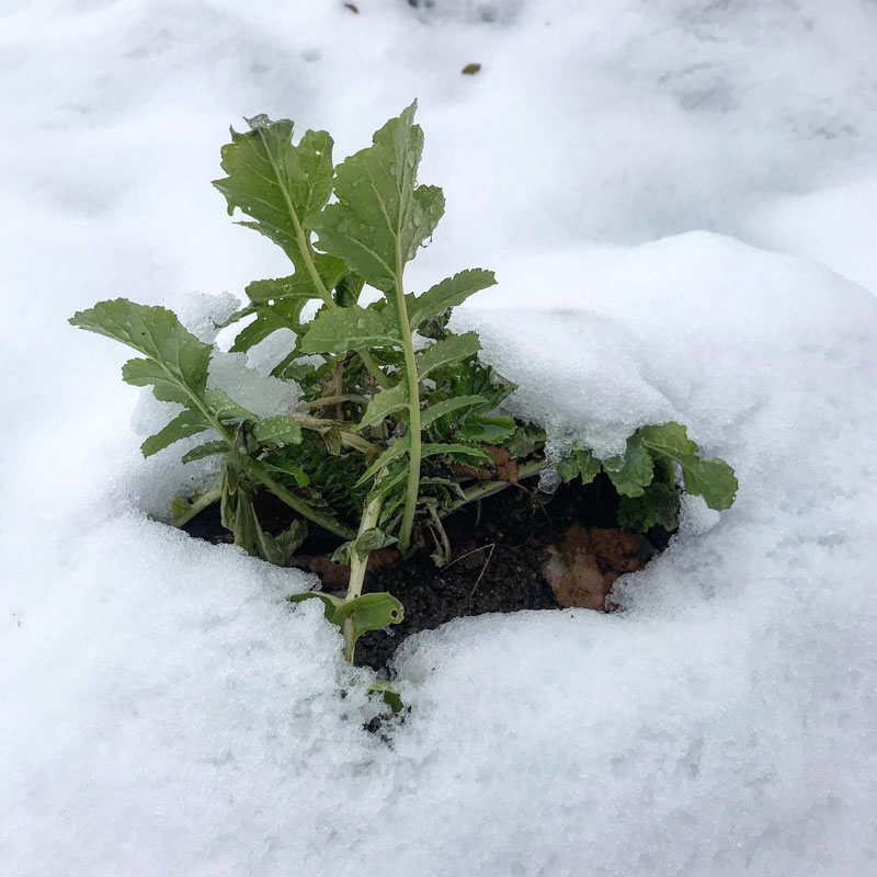 今日の雪を見越して昨日大きめの大根を全部抜いておいてよかった。葉を美味しく食べるためにここまで育ててきた。