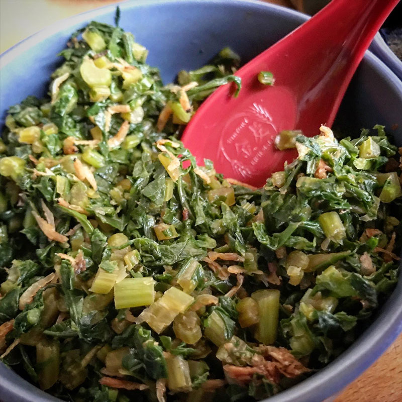 庭の畑の大根葉をカミさんが炒め物にしてくれた。大好物。