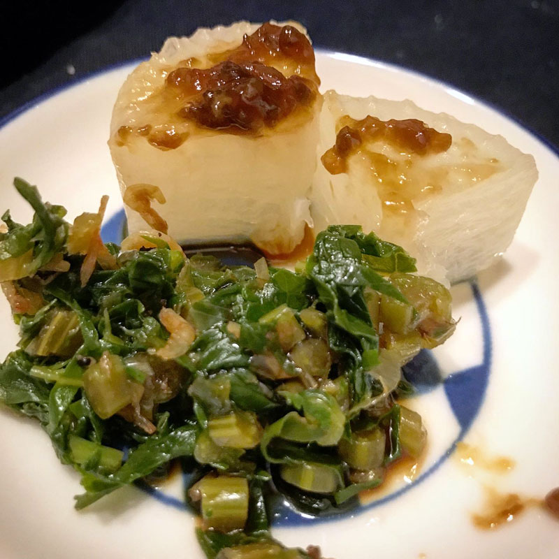 ふろふき大根は定番味噌の後、畑の大根葉の炒め物に醤油垂らして食べたらこれも美味い。