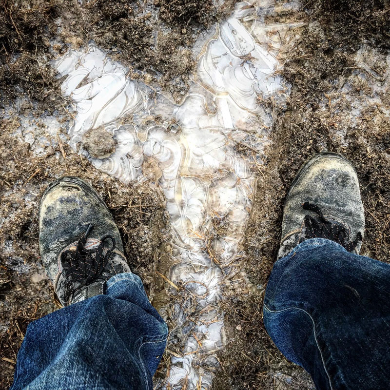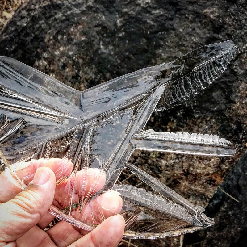 水溜まりの表面の水が凍って残る氷を見るのがこの季節の楽しみ。