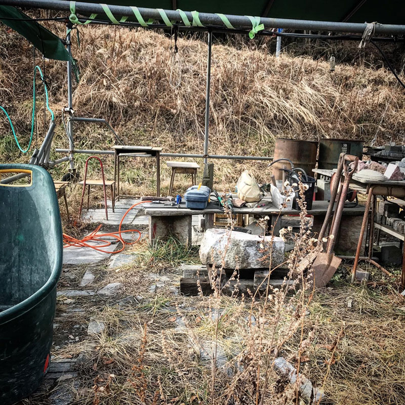 例年なら何枚も厚着してウールのジャケット着てネックウォーマーや暖かい靴とか履いてやってるけどいつもと同じ服。制作には嬉しい異常な暖かさの冬。