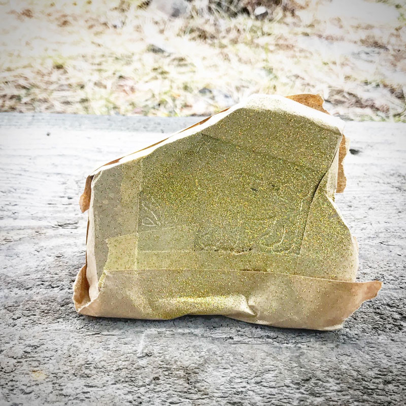 金色の塗料で着色。さらに金ラメ加工。