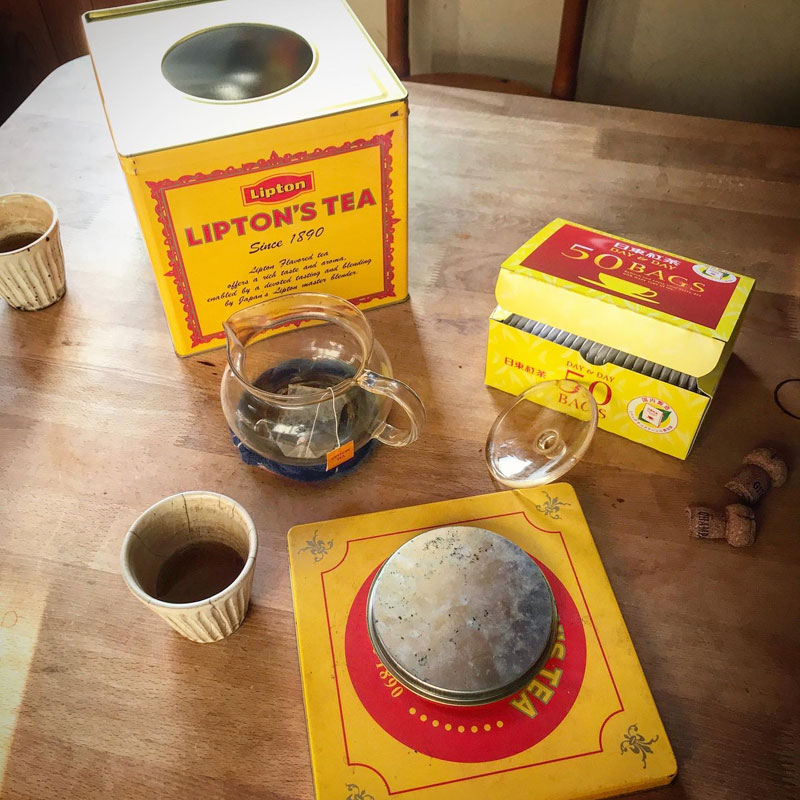 僕は紅茶飲みなので毎朝紅茶を入れる事から一日が始まる。美味しいお菓子をいただいた時は茶葉でていねいに入れるけど普段はティーバッグ。仕事場に持ってく水筒には紙と糸をちぎってそのまま放り込めばお湯を注いですぐに出発できる。