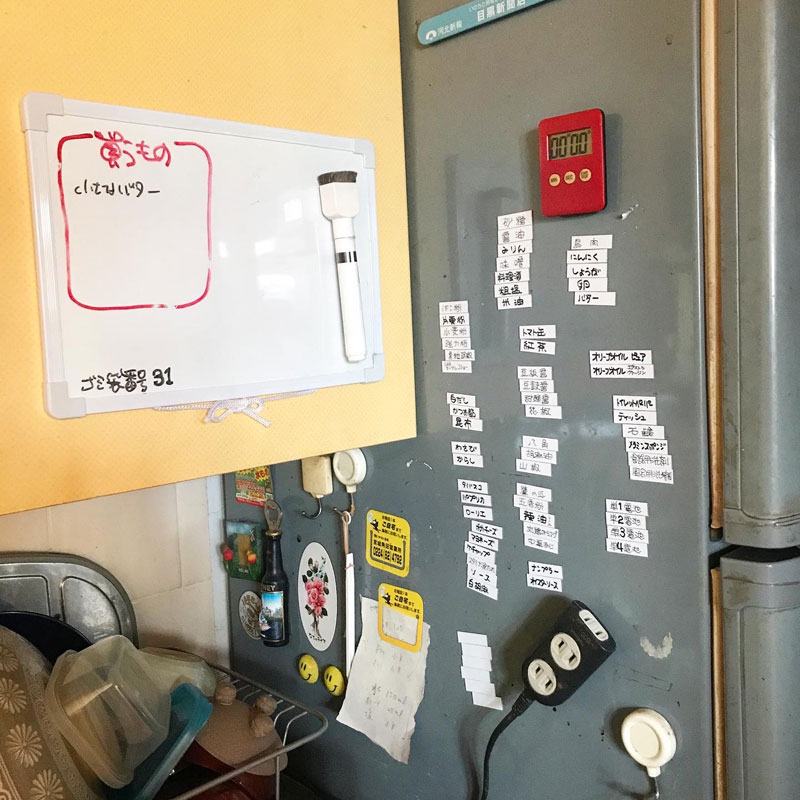 マグネットシートとホワイトボードの買い物リスト、ちょっと改良。キッチンの収納扉につけたのですぐ横に冷蔵庫の配置。スマートじゃ無いけど、マグネットは全部そちらに移して買うものだけをボードに吸着させる事にした。スマホで撮った時にわかりやすいし。冷蔵庫のドアに何か貼ったりするのは運気を下げるらしいから貼った事ないけど横だから許して(誰にだ?)親父にもらったハンドプレンダーもよく使ってるので延長したコンセントに磁石付けてこれも冷蔵庫に。水がかからない様にしないと危険だから。
