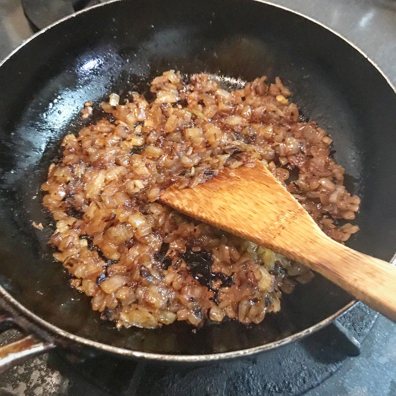 トマト缶を加えてぽったりするまで煮込んで出来上がり。