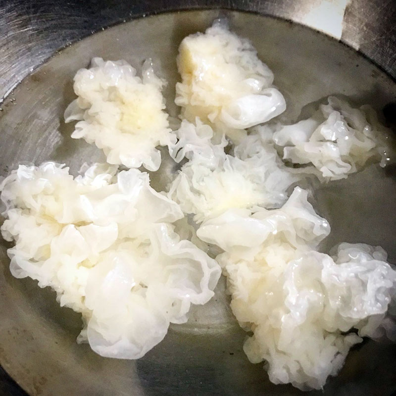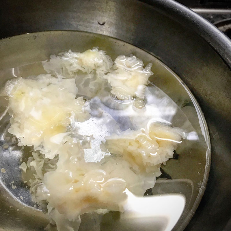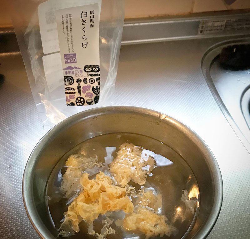 幼なじみにもらった岡山県の白キクラゲを水で戻しておいた。
