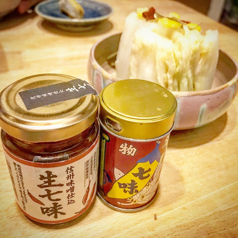 七味や幼なじみにもらった生七味の味変も幸せ。いただいた純米酒で喉を流せば至福。ごちそうさまでした。