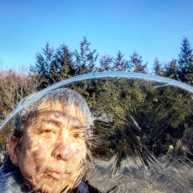 こうやって撮ってると水がしたたり落ちてるんだよ。冷たい!