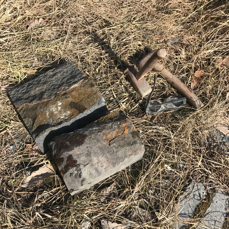 コヤスケと石頭(せっとう)で石割り。