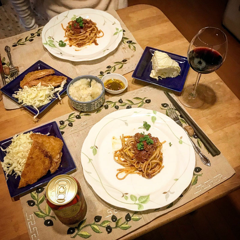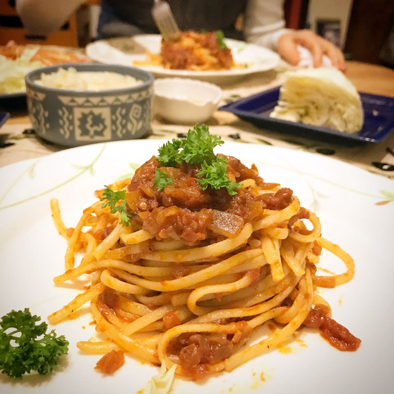数日前に仕込んで寝かせておいた サルサ・ポモドーロ(トマトソース)のパスタ。ディチェコのリングイネで。