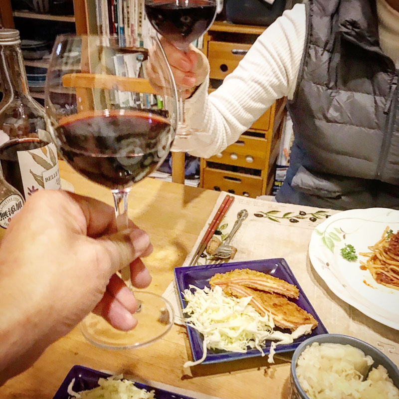 有機ワインで乾杯して、