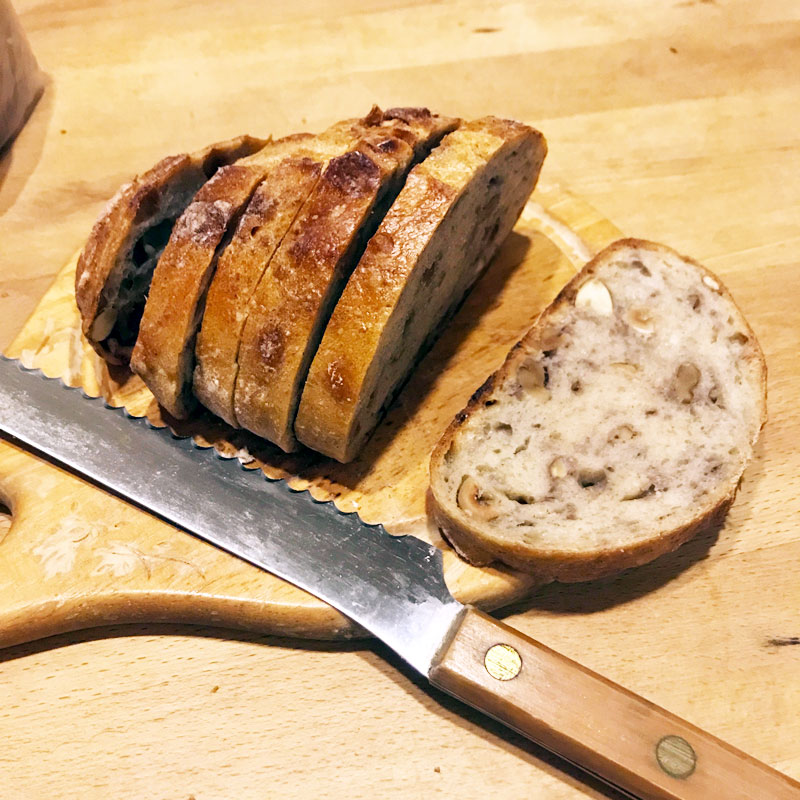 カットしながら端っこをトーストしてちょっとつまみ食いしたら美味しくて赤ワインを飲まずにいられない。ありがとうございます。