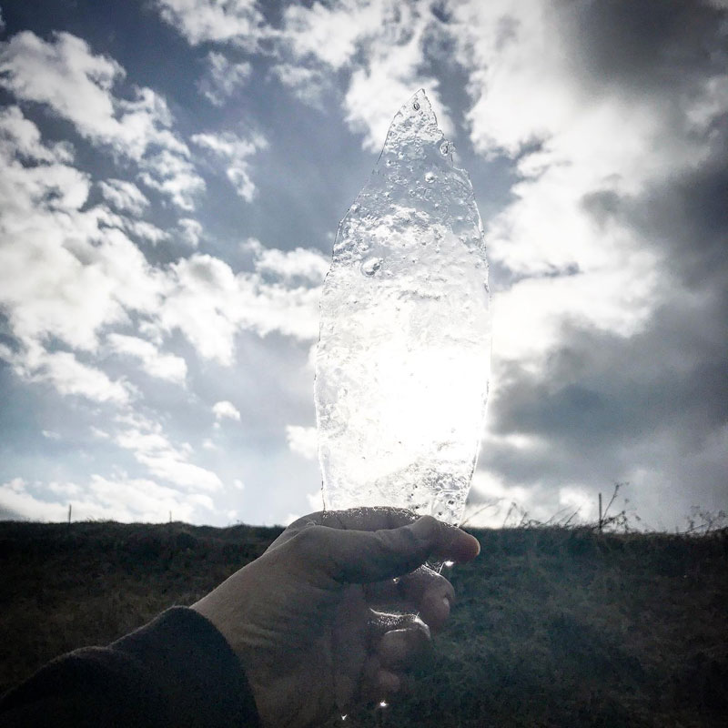 仕事場のドラム缶に薄氷が張っていた。