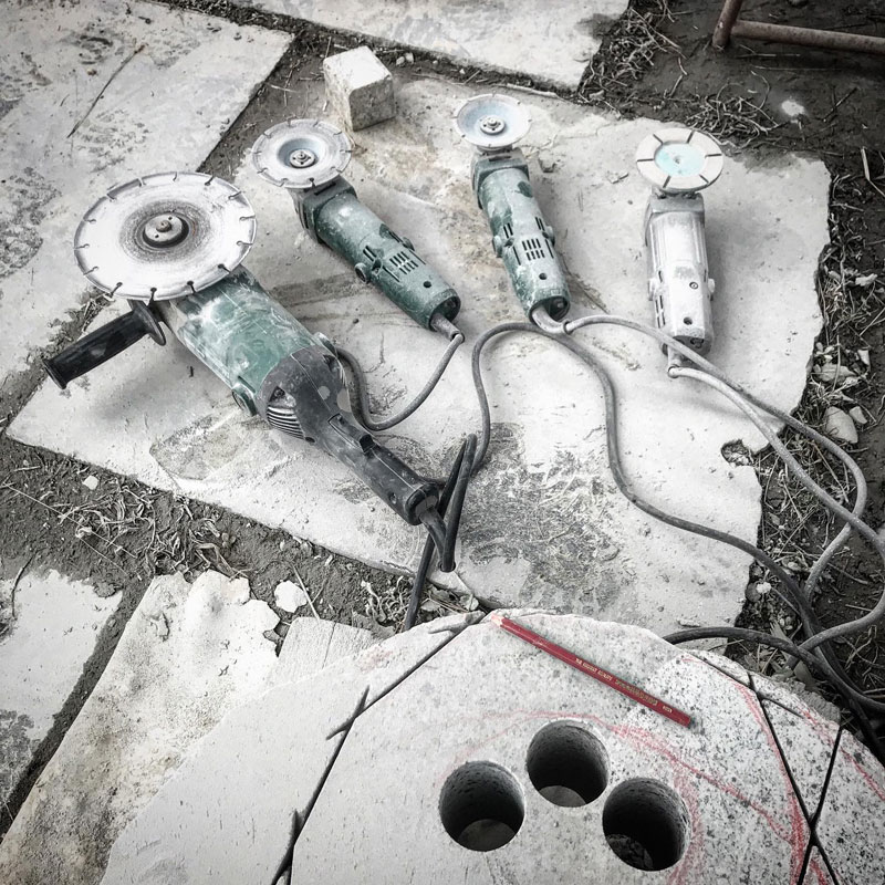 石の粉塵だらけになる