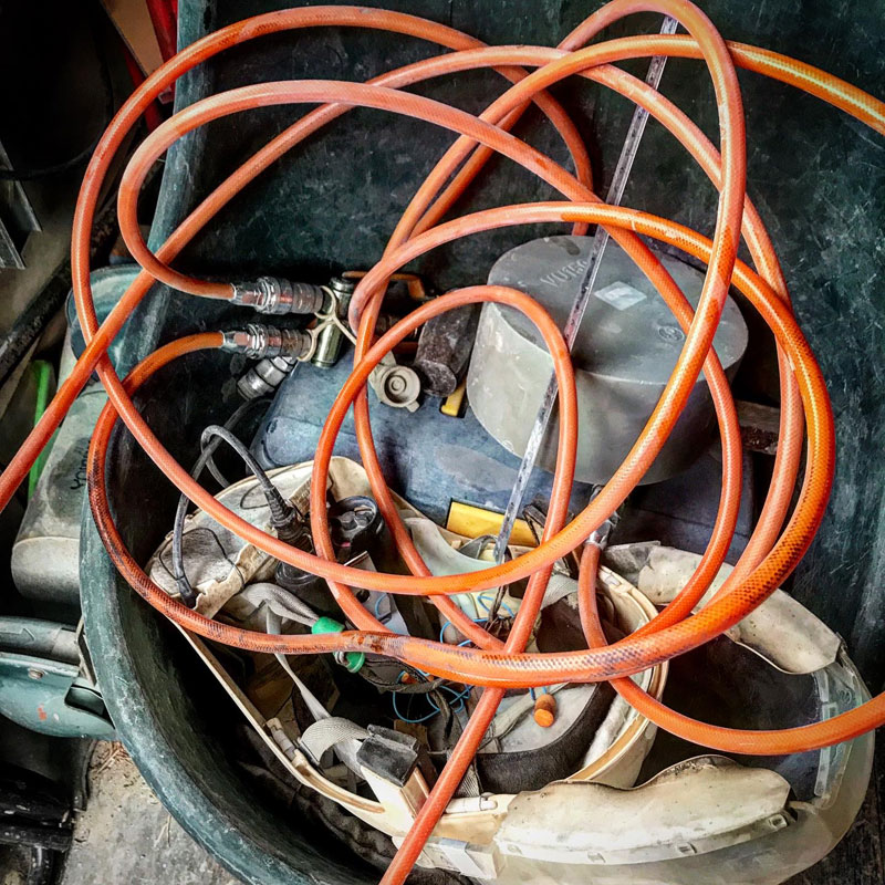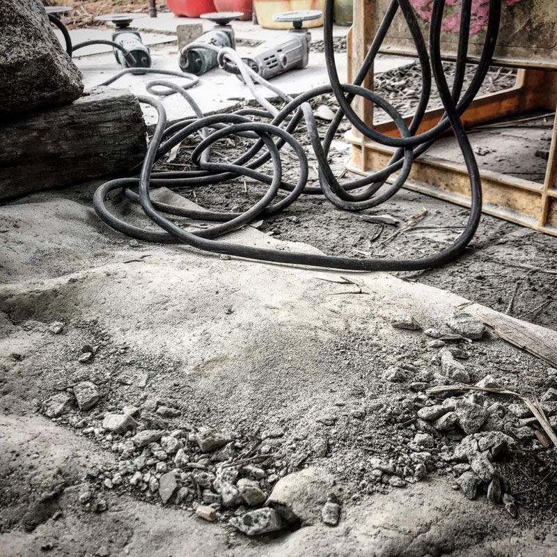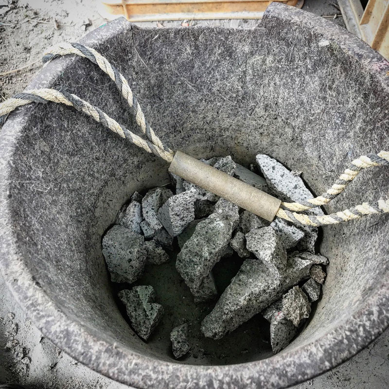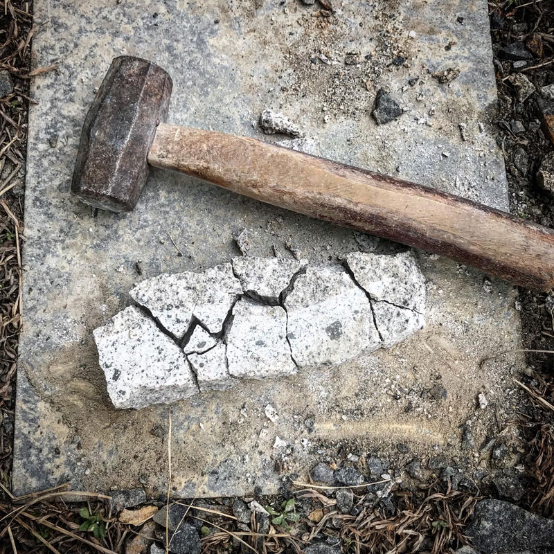 仕事場のぬかるむところに撒くために足頭(石工用のトンカチ。重い)で