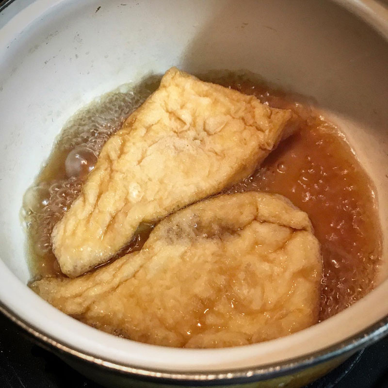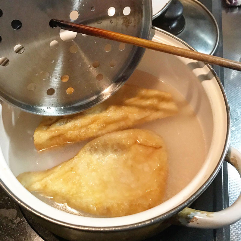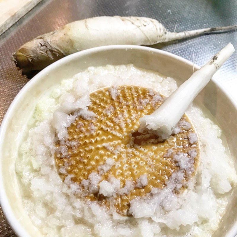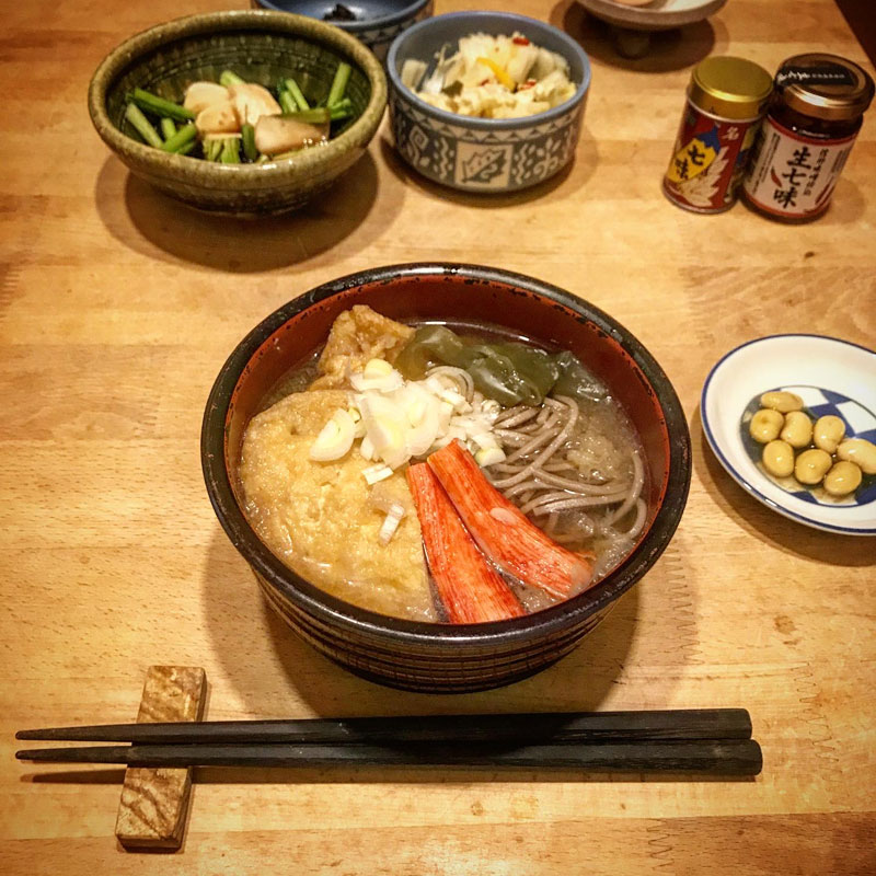出汁に畑から抜いてきた寒さで甘くなってる大根をおろしも入れて煮て、作り置きしてるかえしと合わせて出来上がり。トッピングはおあげと出汁とったときの昆布、カニカマ、長ネギ。集中的に毎週作ってたらなんだか最近、相当美味い(自分比w)。