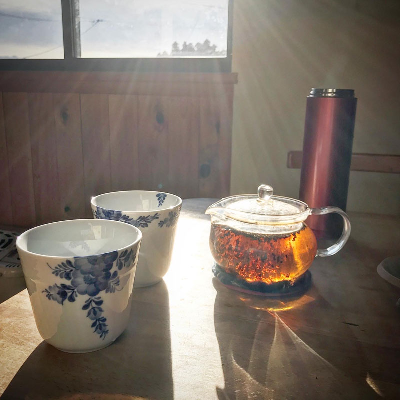 紅茶をいれて出かけよう。地面は昨夜の雨で濡れてるけど今日も良い天気だ。