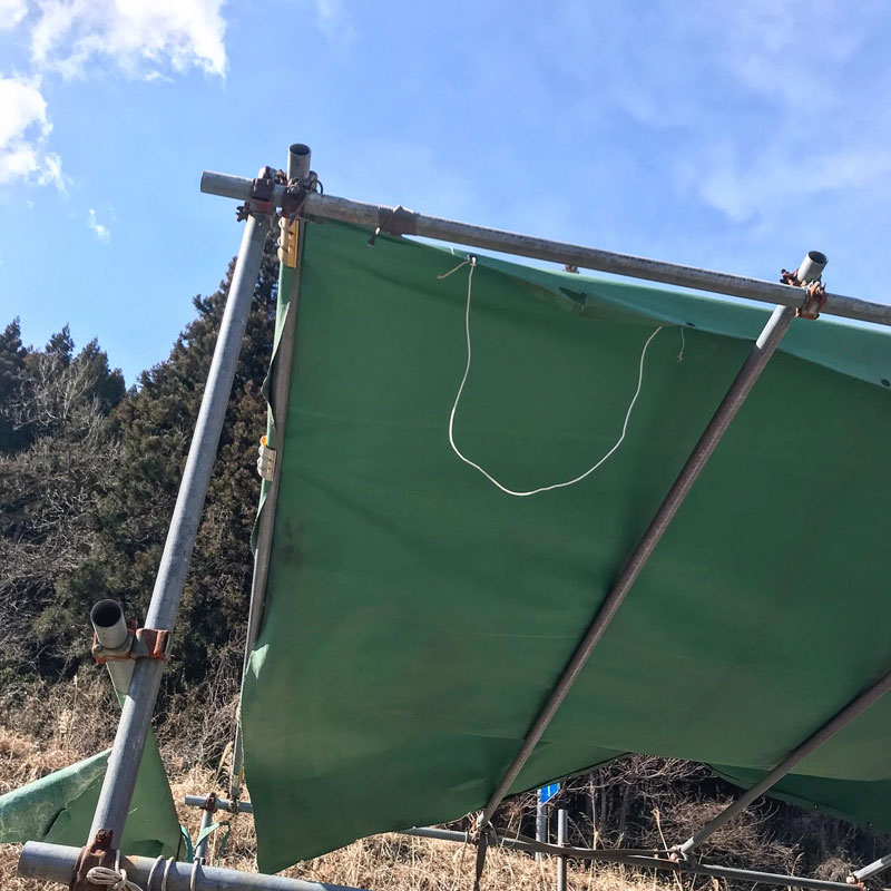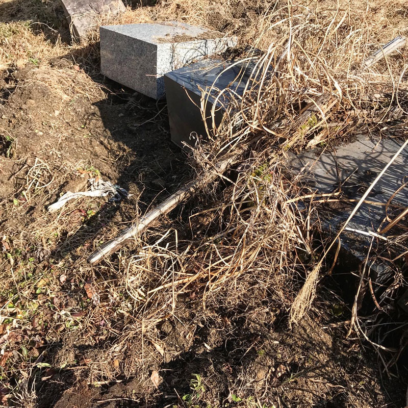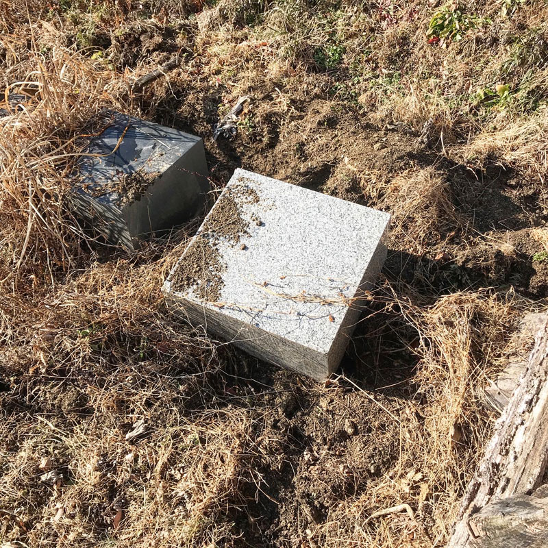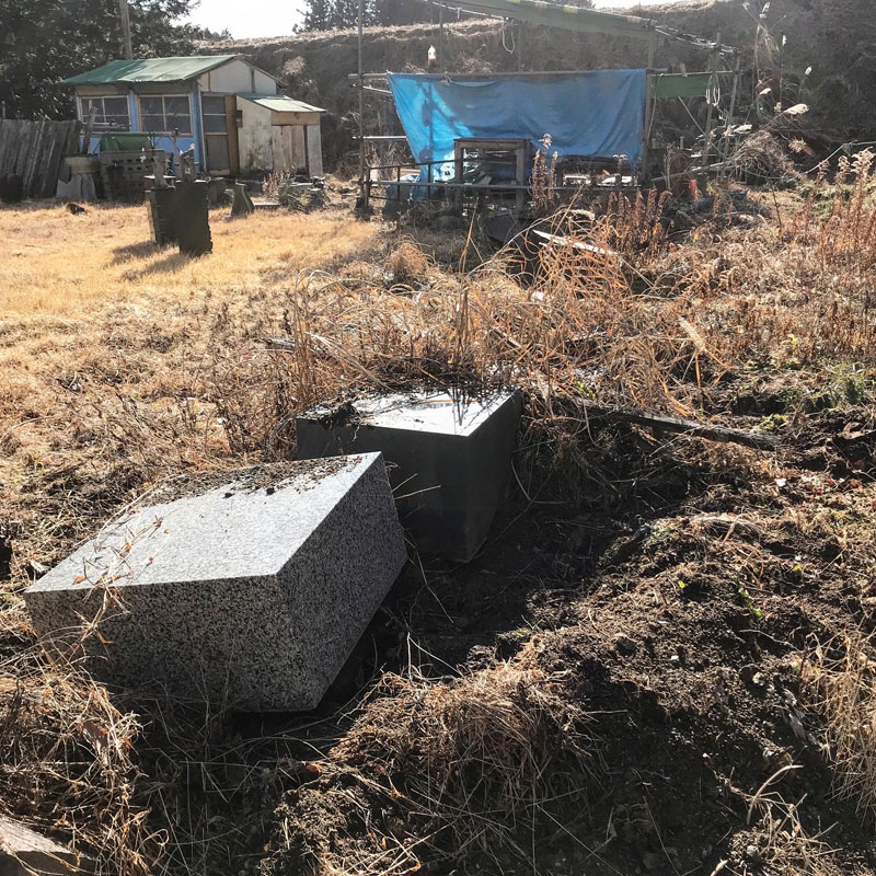 ユニック車でしか動かせない石も動かして傾いてる。数百kgあるのに。そして獣臭。