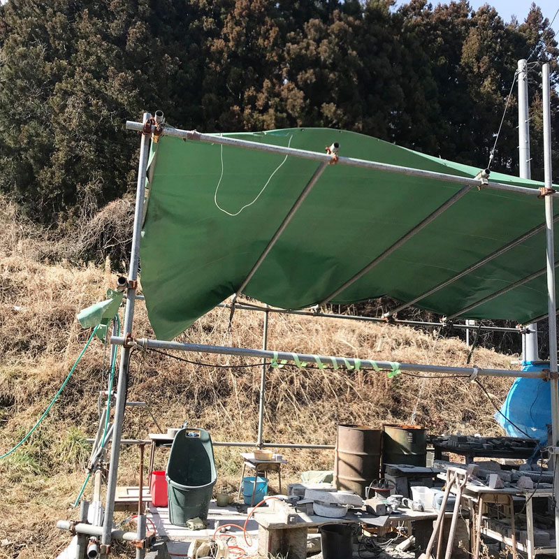 今日も仕事場の土手の上のタンクに家の水道から汲んできた磨き用の水運びから。重い。