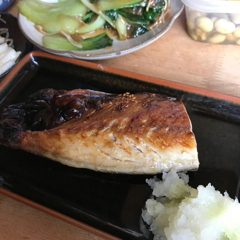 いただいた塩干魚の塩鯖、美味過ぎ。大根おろし甘過ぎ。