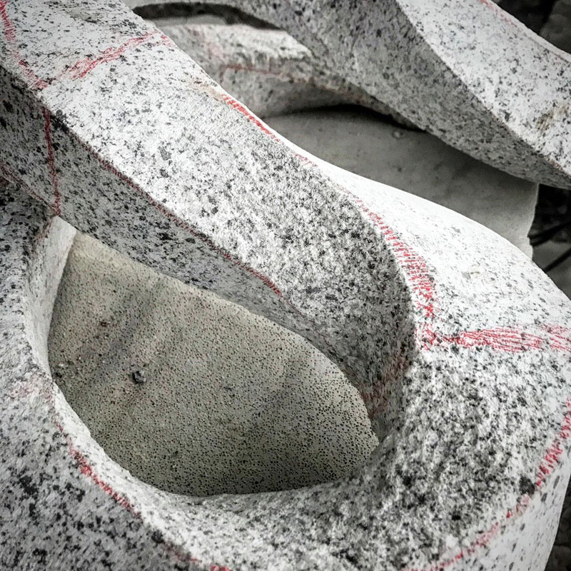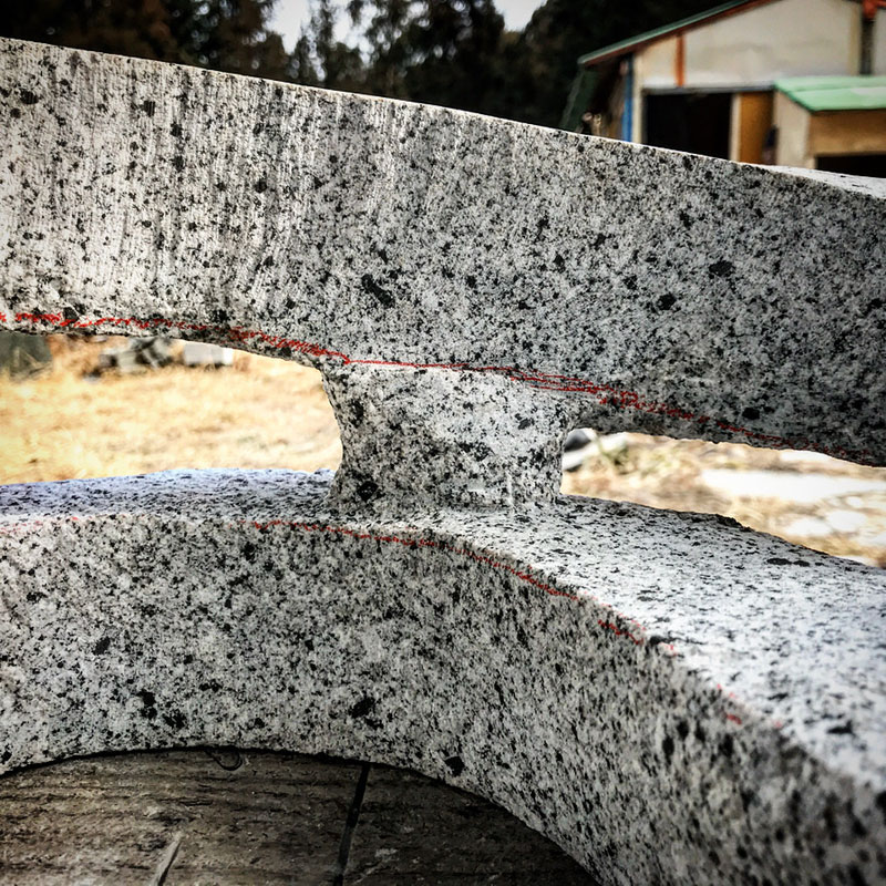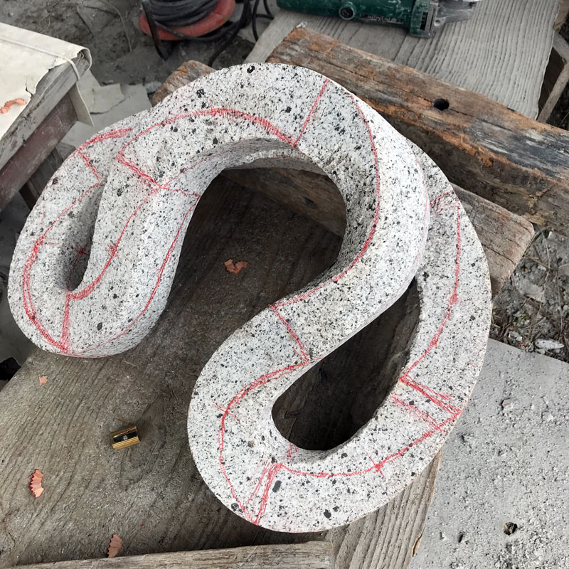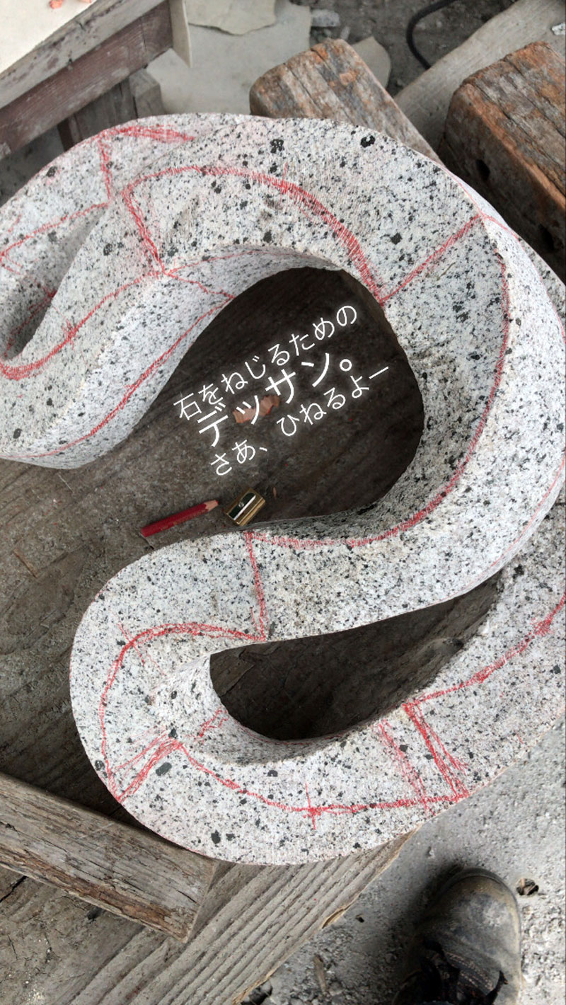 石はねじれないのでねじれてるように彫っていきます。