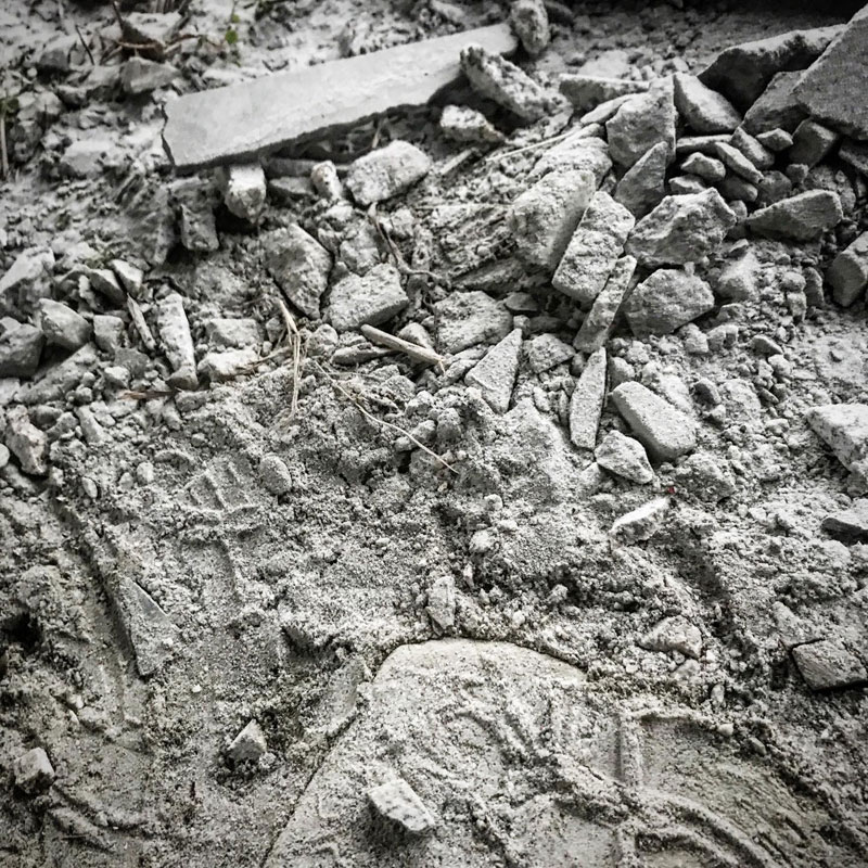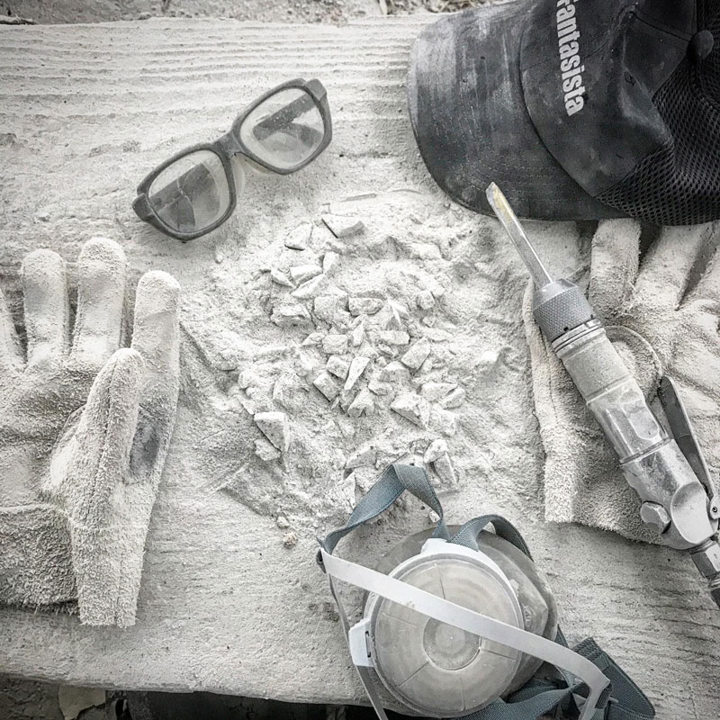 石の粉塵が目に入りまくりで涙。