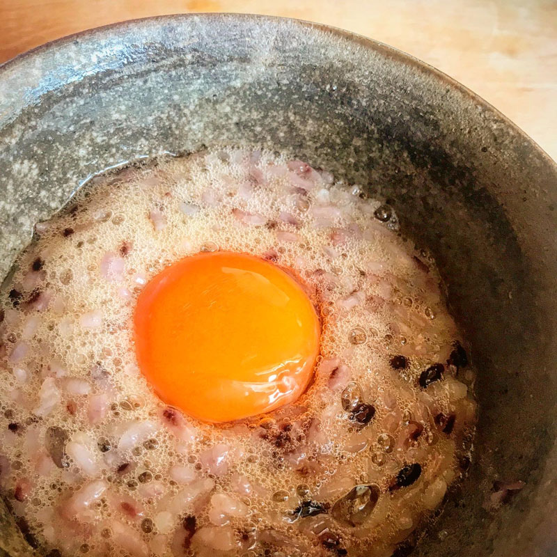 古代米(黒米)を混ぜて炊いたご飯が綺麗。