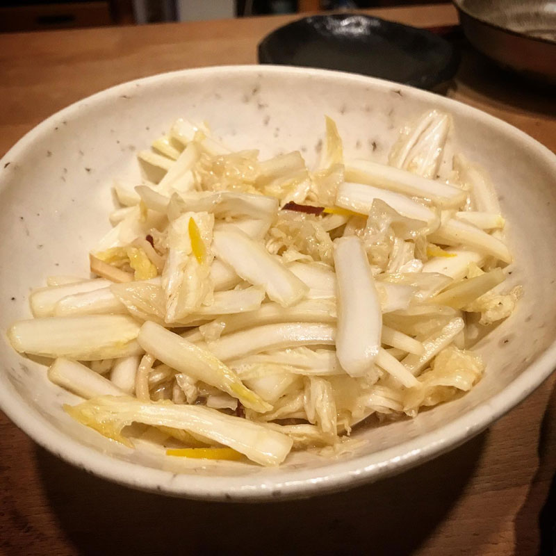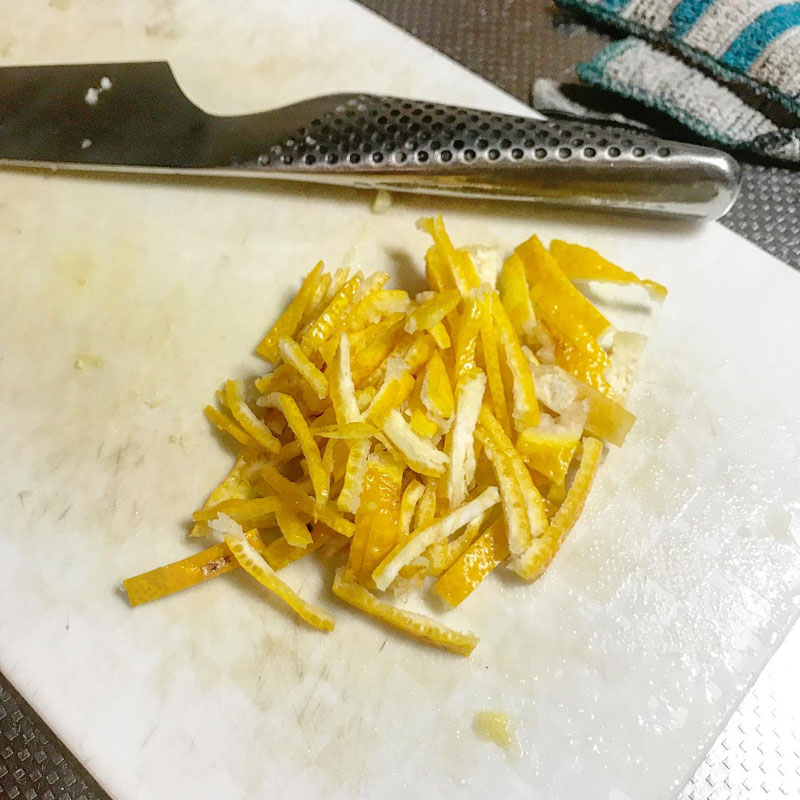 あと何回か漬けようと思ってる白菜漬け用に冷凍するために皮のみを削いだ柚子の皮をほんのひとつかみ大根と鶏ひき肉の煮物に。