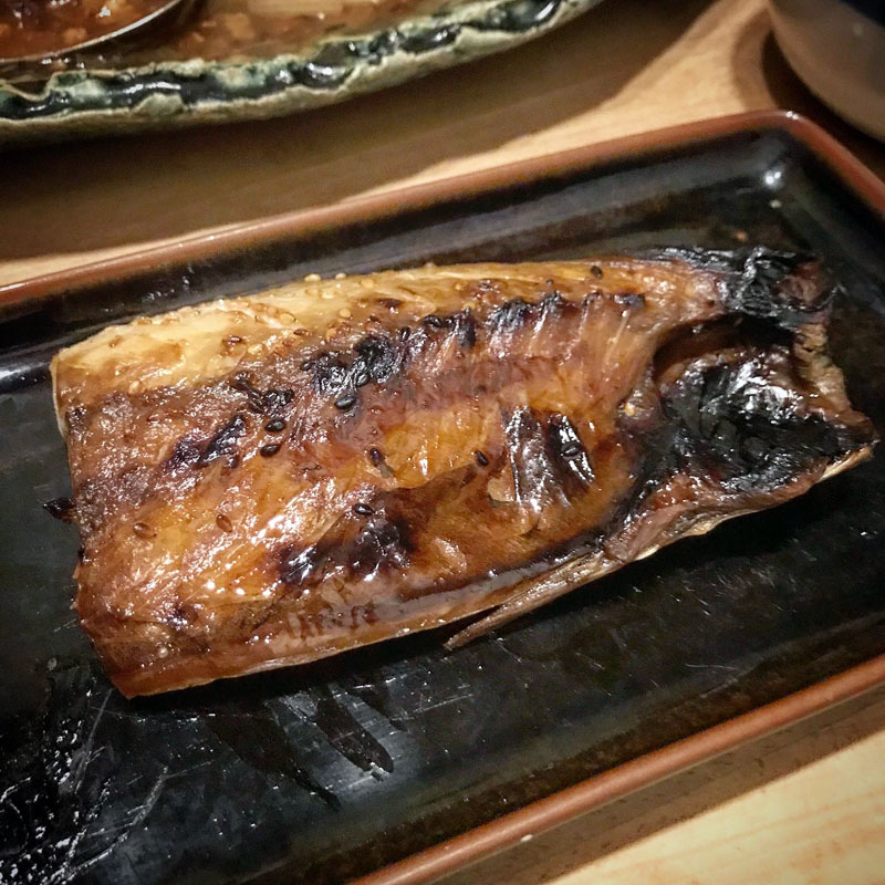 いただいた塩鯖の塩干魚は魚焼き名人のカミさんに焼いてもらう。