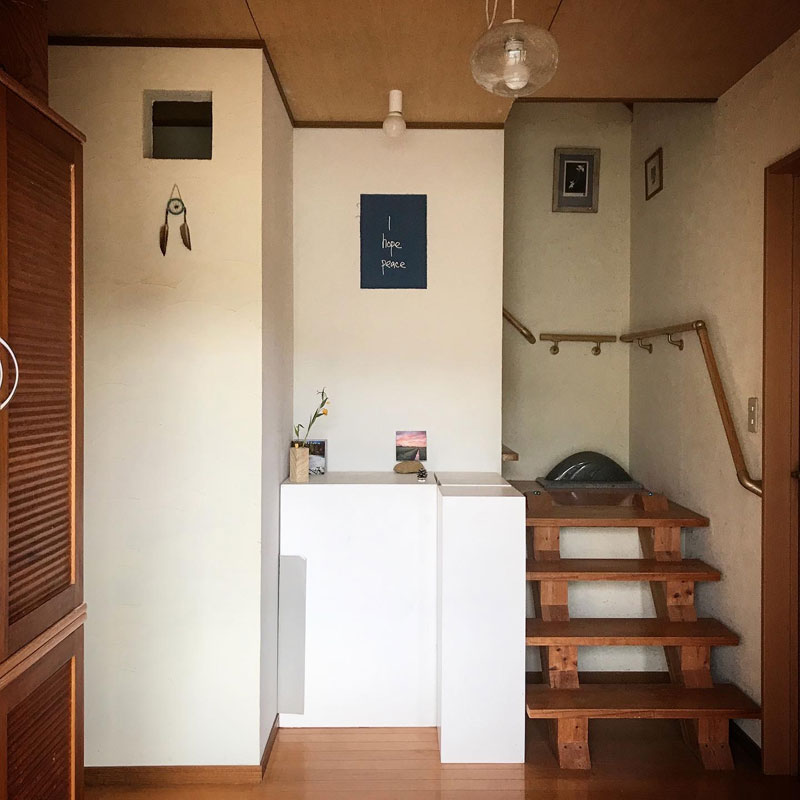 展示台3つ積んで玄関広くなった。