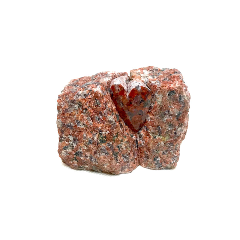 インド産赤御影石の小さな石の彫刻「アカイココロ」4つ仕上げた。