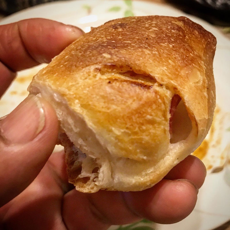 ベーコンエピをストーブで焼いてソースまで拭って食べたよ。