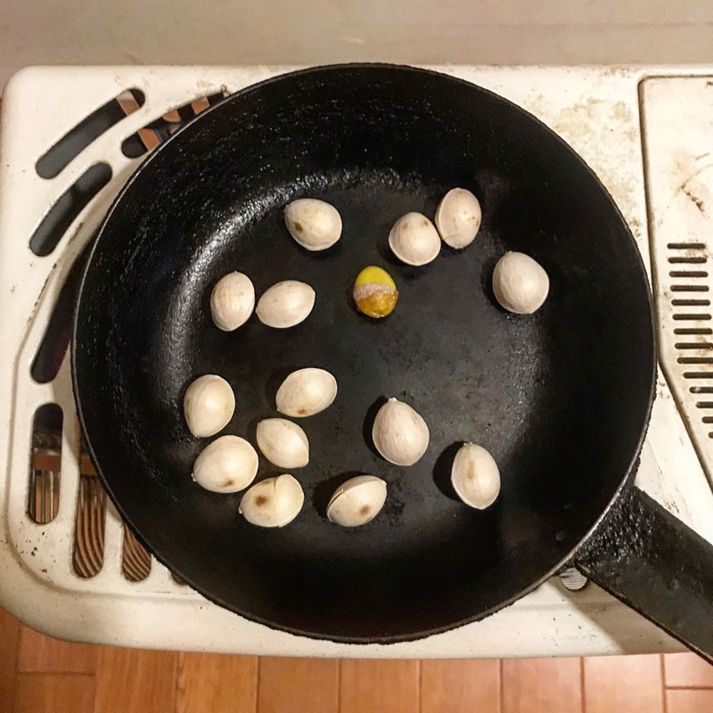 じっくりしっとり銀杏炒った。
