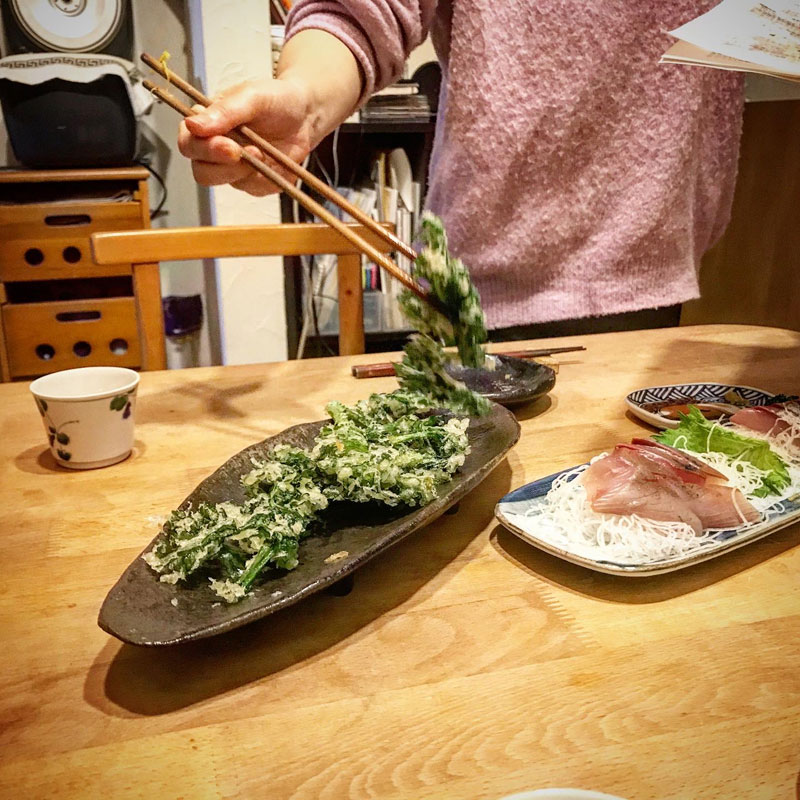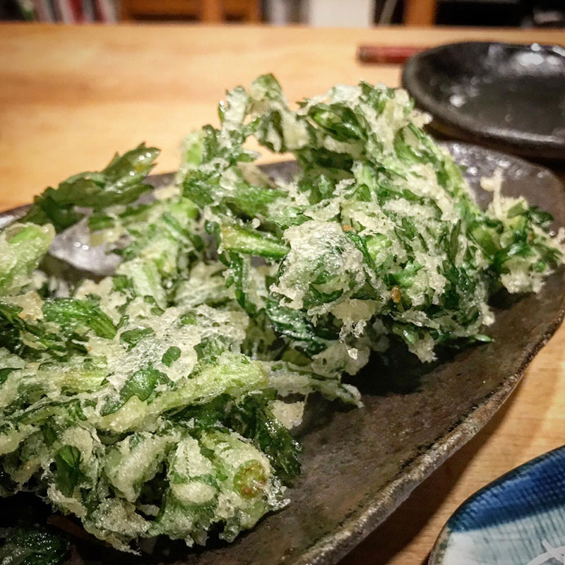 春菊もカリカリの天ぷらにしてくれた。