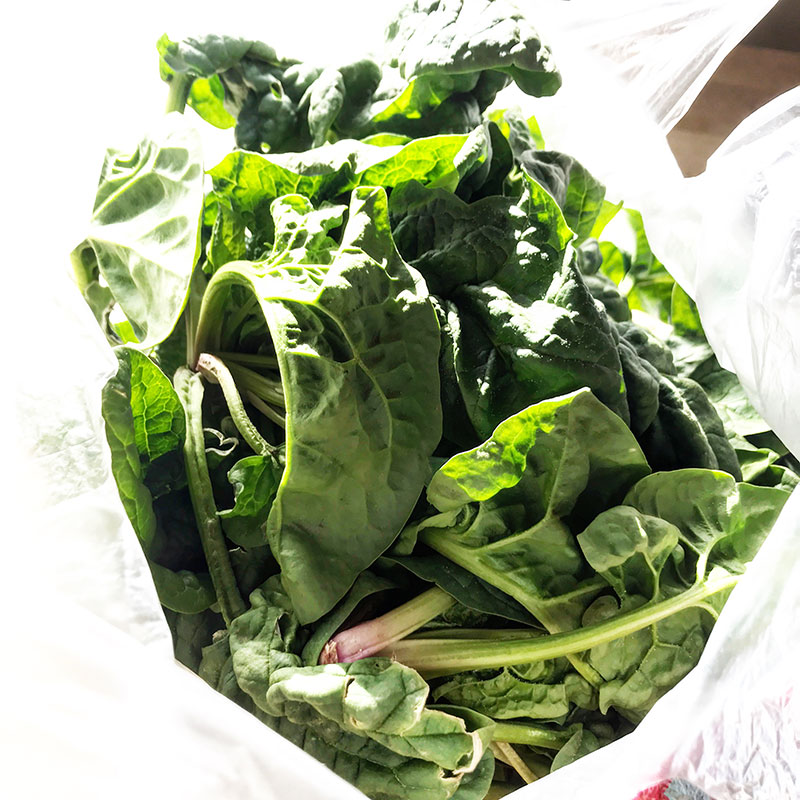 近所の方にほうれん草をどっさりいただいた。