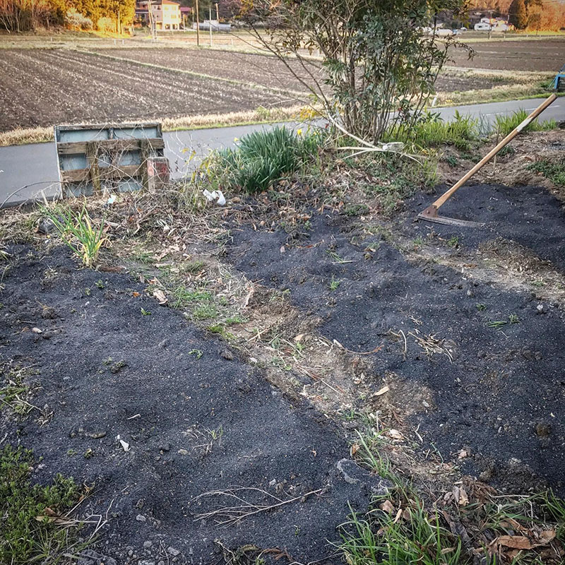 今日は籾殻の燻炭を贅沢にたっぷりすき込んだ。