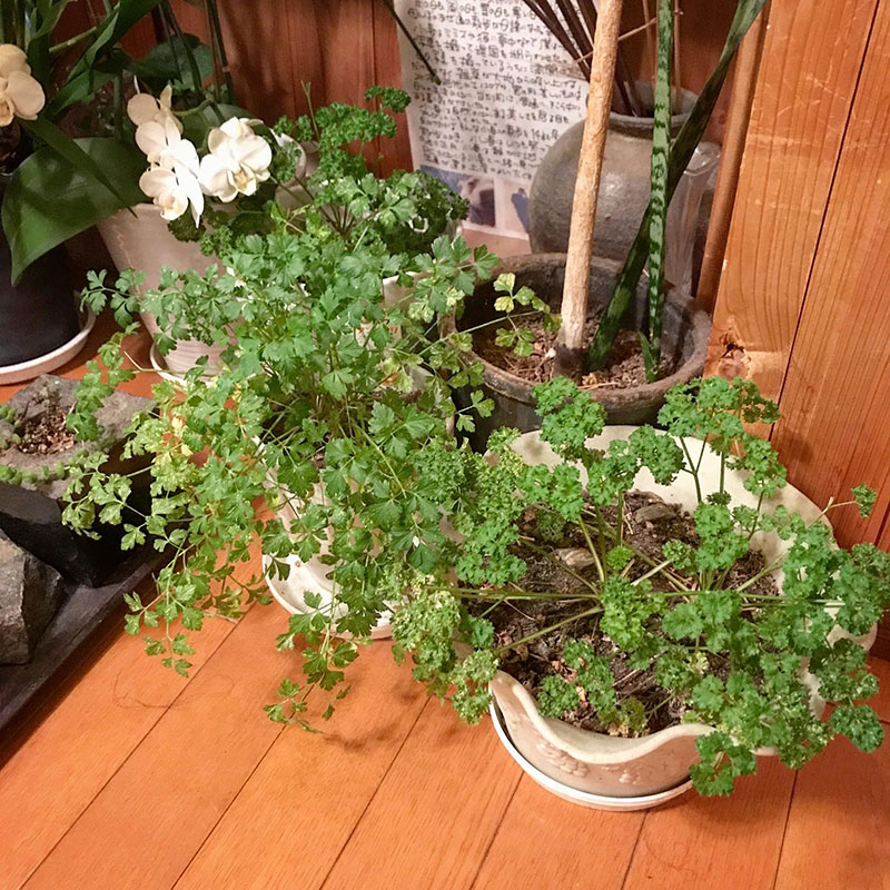 みじん切りにして振りイタリアンパセリを散らす。