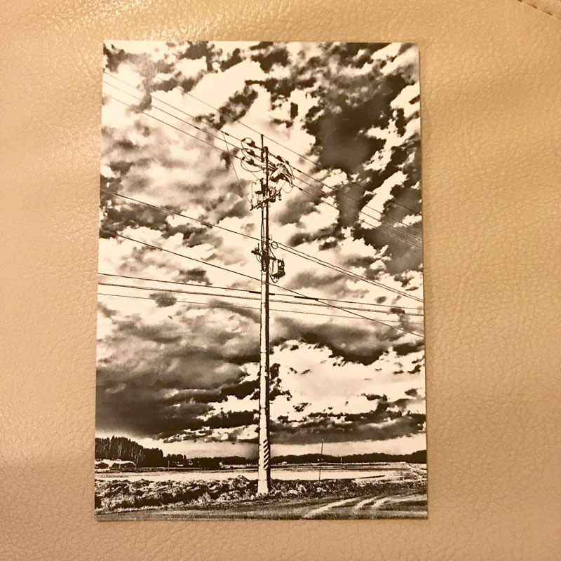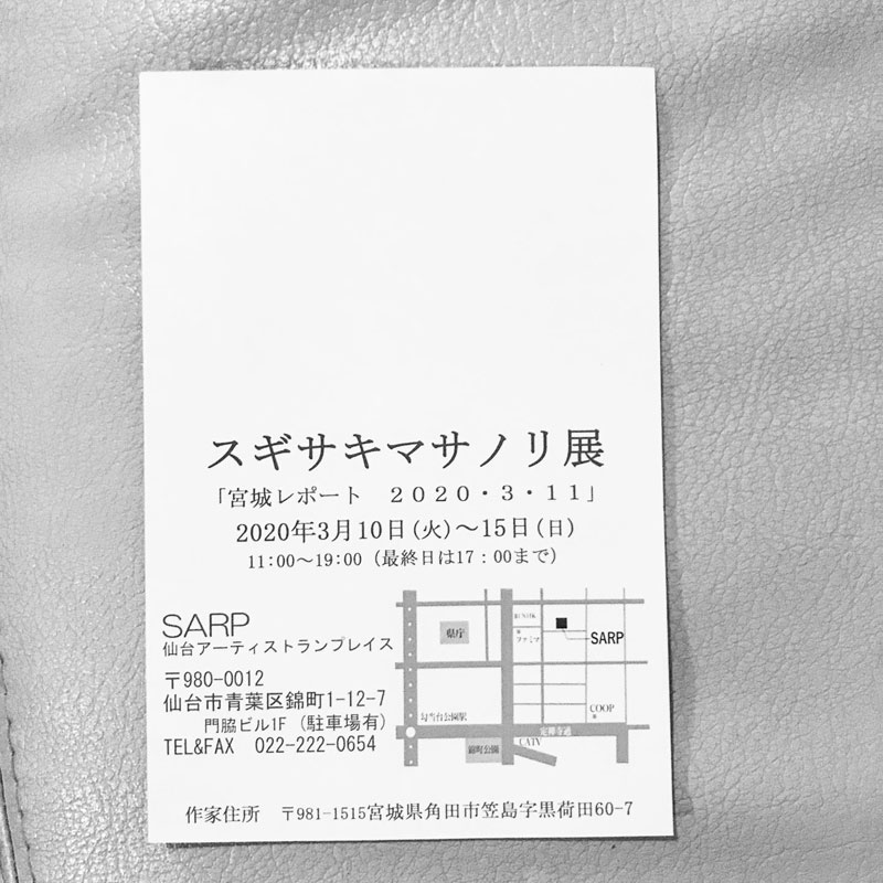 初日。9年前の東日本大震災当日もここで個展をしていたスギサキマサノリくん。それ以来、毎年3・11の週に「宮城レポート」としてあの日をテーマに作品を発表している。