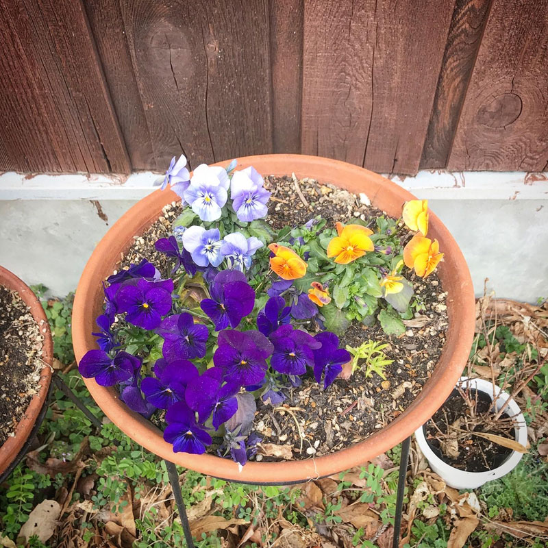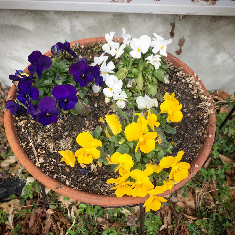 鉢植えのパンジー。
