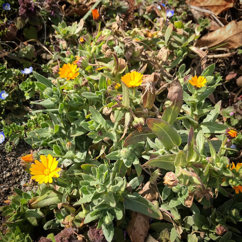 カミさんが入り口の土手に増やしている名前の知らない黄色い小さな花。