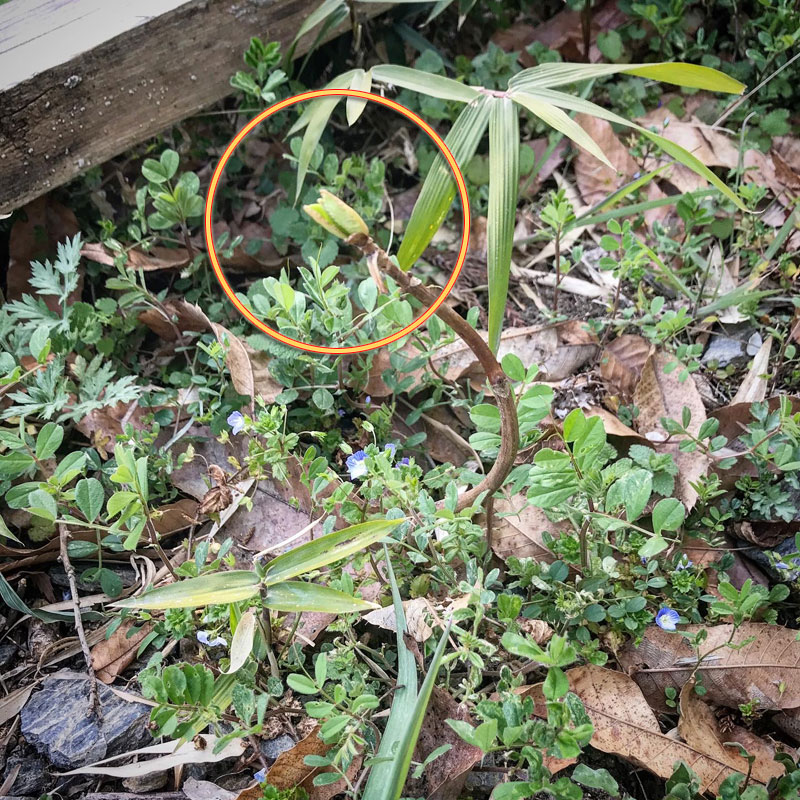 去年、移植に失敗した紫陽花。ひとつだけ枯れ枝の様な茎から新しい葉が出ている!紫陽花でいっぱいにしたいんだよなぁ。