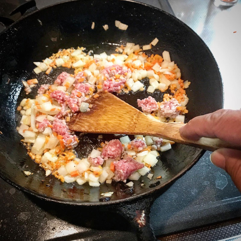玉ねぎ、ニンジン、豚ひき肉。