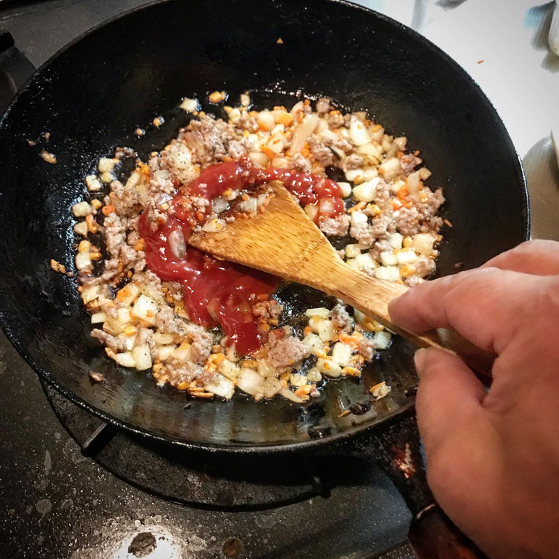 ご飯を入れてからケチャップを入れていたけど、ケチャプも炒めてからご飯投入の方が美味しくなるらしい。